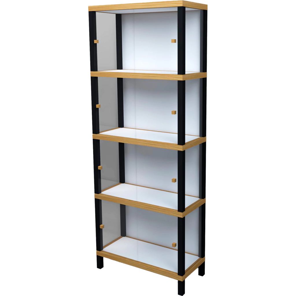 Este armário possui portas e laterais de acrílico incolor, ideal para exposição.
