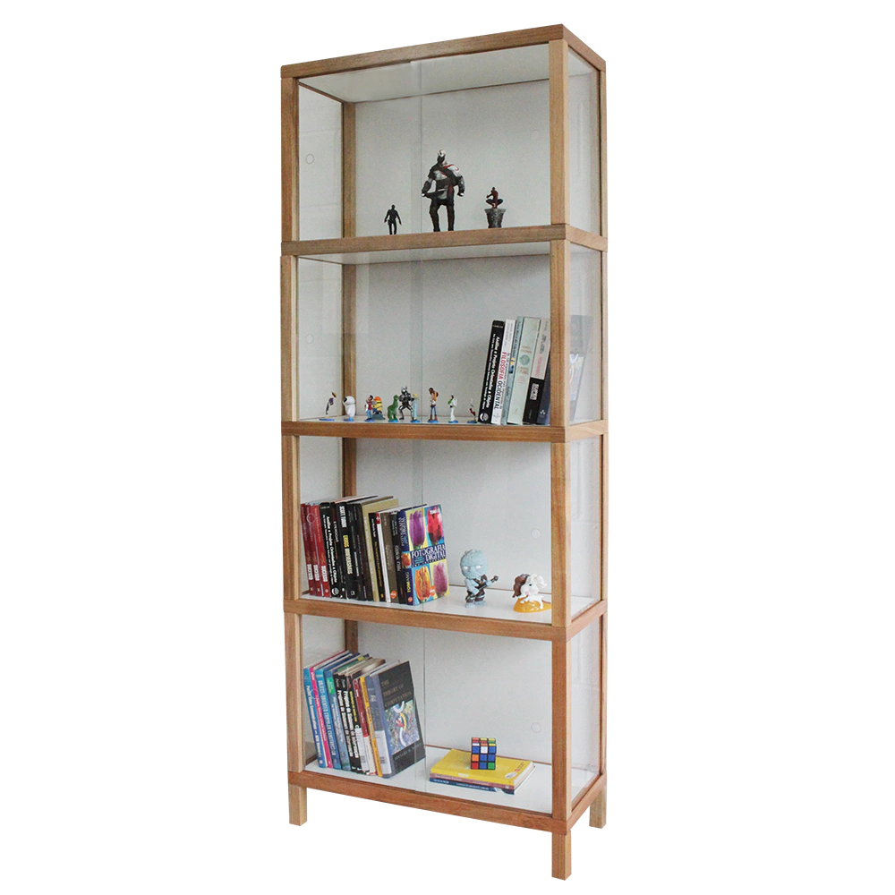 Este armário possui portas e laterais de vidro incolor, ideal para exposição.