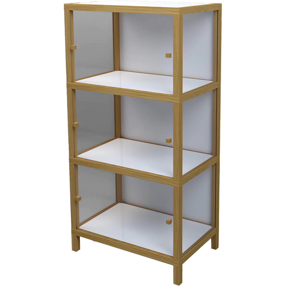 Este armário possui portas e laterais de acrílico incolor, ideal para exposição.