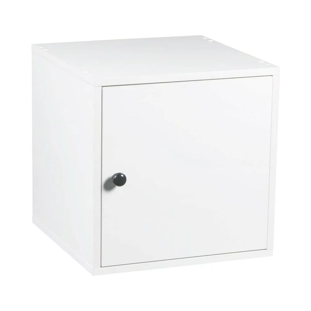 Cubo em MDP (Médium Density Particleboard) com revestimento melamínico que se funde a madeira dando um perfeito acabamento, com bordas em PVC. Esse produto possui uma porta. Tem a versatilidade de se encaixar em qualquer ambiente e de formar torres, pois possui em perfeito sistema de encaixe um sobre o outro.
