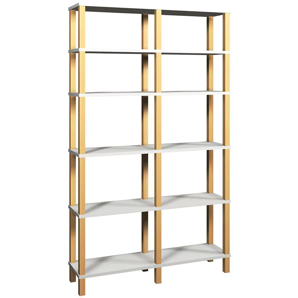 A estante de montantes Evolukit faz parte de uma linha exclusiva com estrutura em madeira maciça para mais resistência e durabilidade. As prateleiras são confeccionadas em MDP(Médium Density Particleboard)