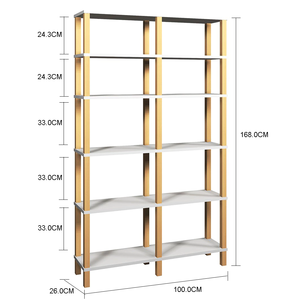 Duas prateleiras com 24,3cm de altura (espaço ideal para todo tipo de mangás, encadernados menores e livros no formato padrão) Três prateleiras com 33cm de altura (espaço ideal para encadernados americanos, europeus e outros quadrinhos maiores) |