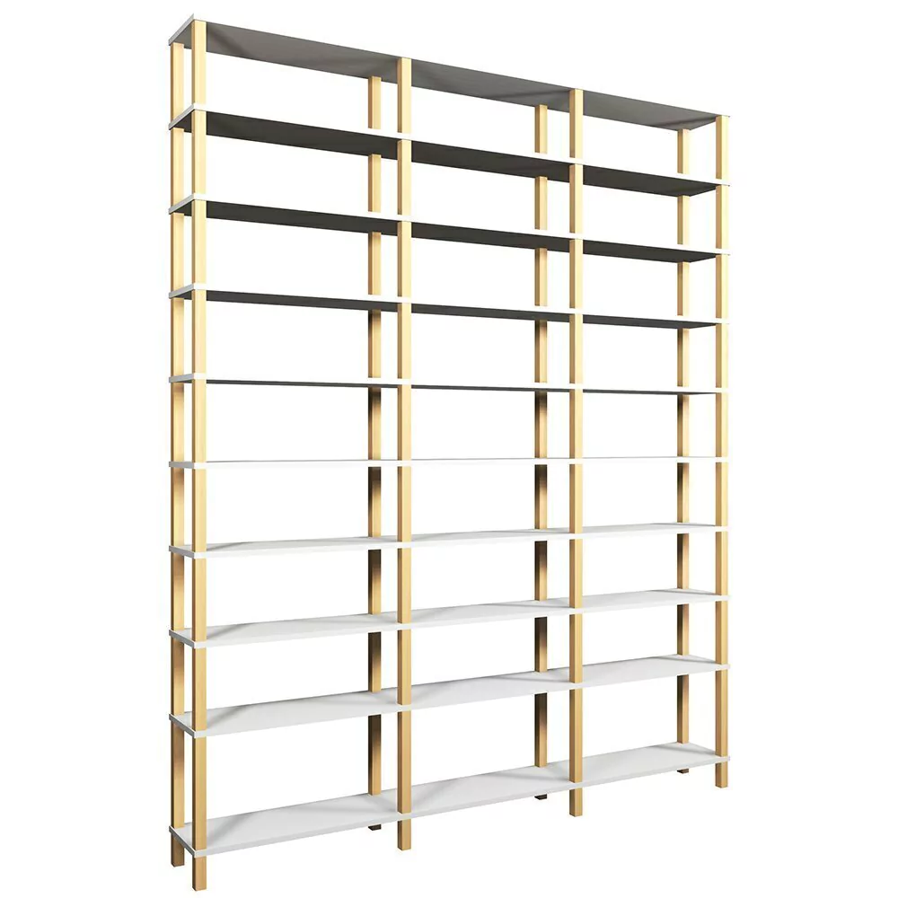 A estante de montantes Evolukit faz parte de uma linha exclusiva, com estrutura em madeira maciça para mais resistência e durabilidade. As prateleiras são confeccionadas em MDP(Médium Density Particleboard)
