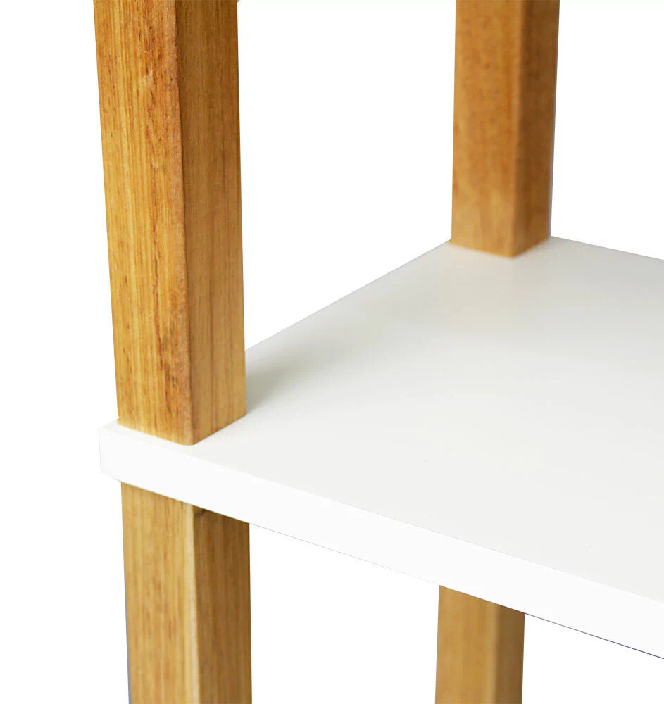 A estante de montantes Evolukit faz parte de uma linha exclusiva, com estrutura em madeira maciça para mais resistência e durabilidade. As prateleiras são confeccionadas em MDP(Médium Density Particleboard)