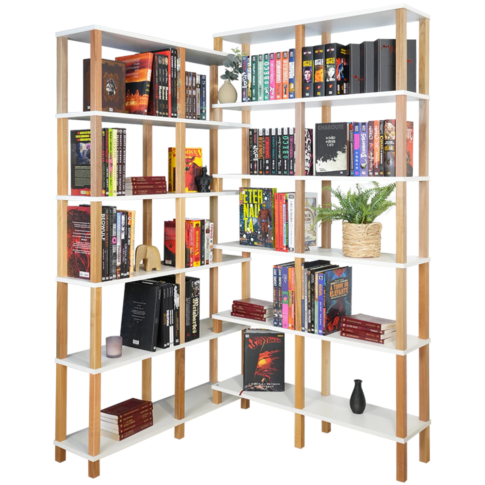 A estante de montantes Evolukit faz parte de uma linha exclusiva, com estrutura em madeira maciça para mais resistência e durabilidade. As prateleiras são confeccionadas em MDP(Médium Density Particleboard)