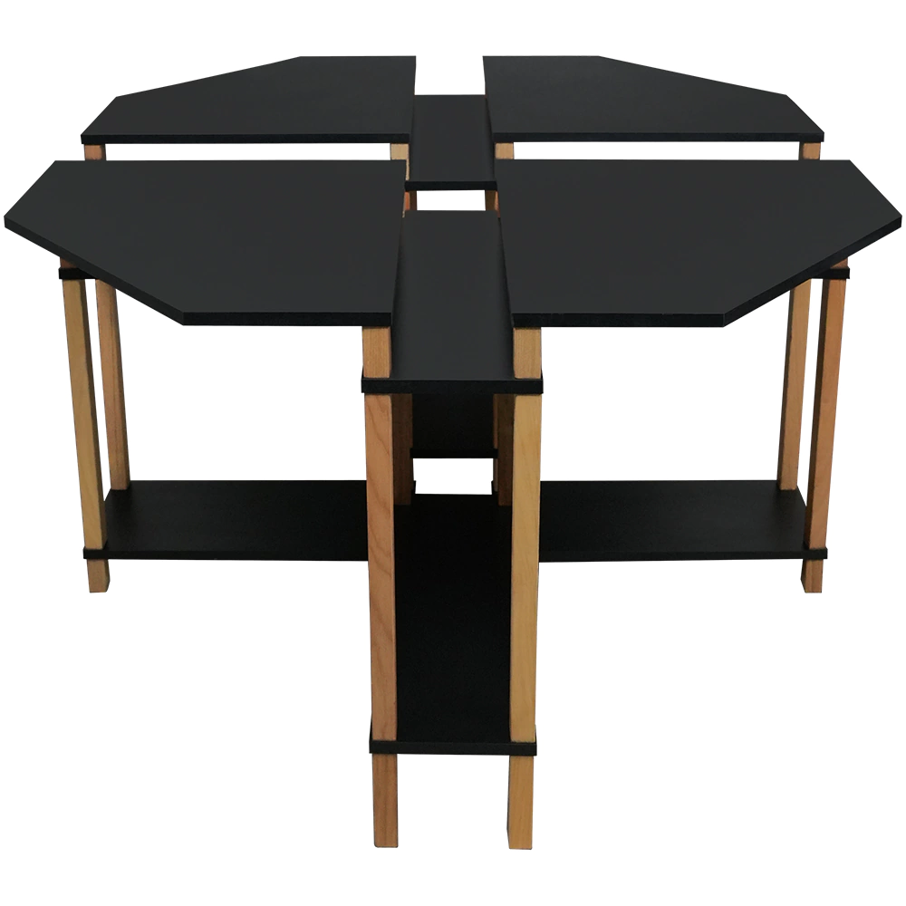 A mesa de montantes Evolukit faz parte de uma linha exclusiva, com estrutura em madeira maciça para mais resistência e durabilidade. As prateleiras são confeccionadas em MDP(Médium Density Particleboard)